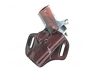 The Concealable holster is one of Galco’s most recognizable and innovative belt holsters. Its unique two-piece construction is contoured on the body side to the natural curve of the hip, keeping all the molding on the front of the holster, allowing for significantly more comfortable carry and a narrower profile than an ordinary pancake type holster. Hand-molded to fit specific handguns, the Concealable features a deeply hand-molded exterior for excellent retention properties and superior appearance, combat grip accessibility for speed, double-stitched seams for durability, and covered trigger guard for safety. The Concealable is constructed of premium saddle leather and made to fit belts up to 1 1/2". Made for both semiautomatic pistols and double-action revolvers, the Concealable is available in right or left hand designs in black or havana brown finish.